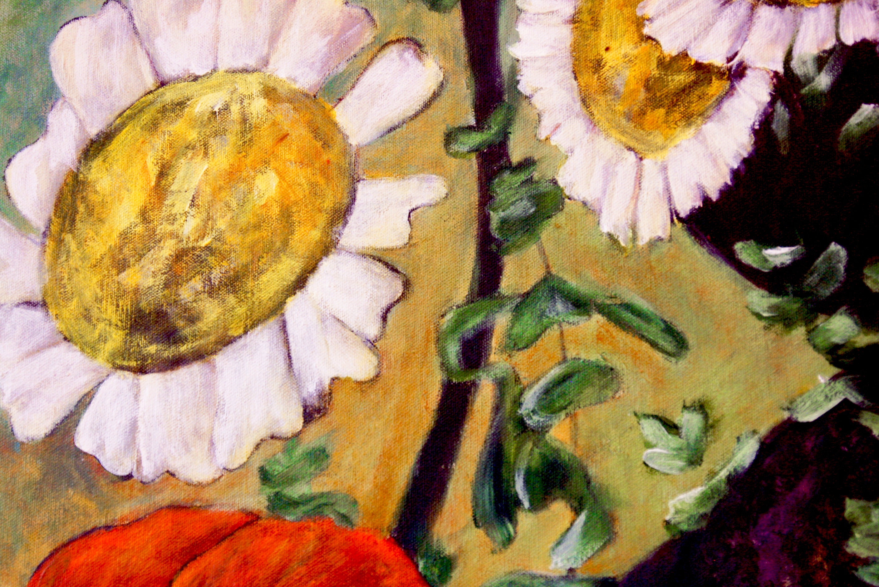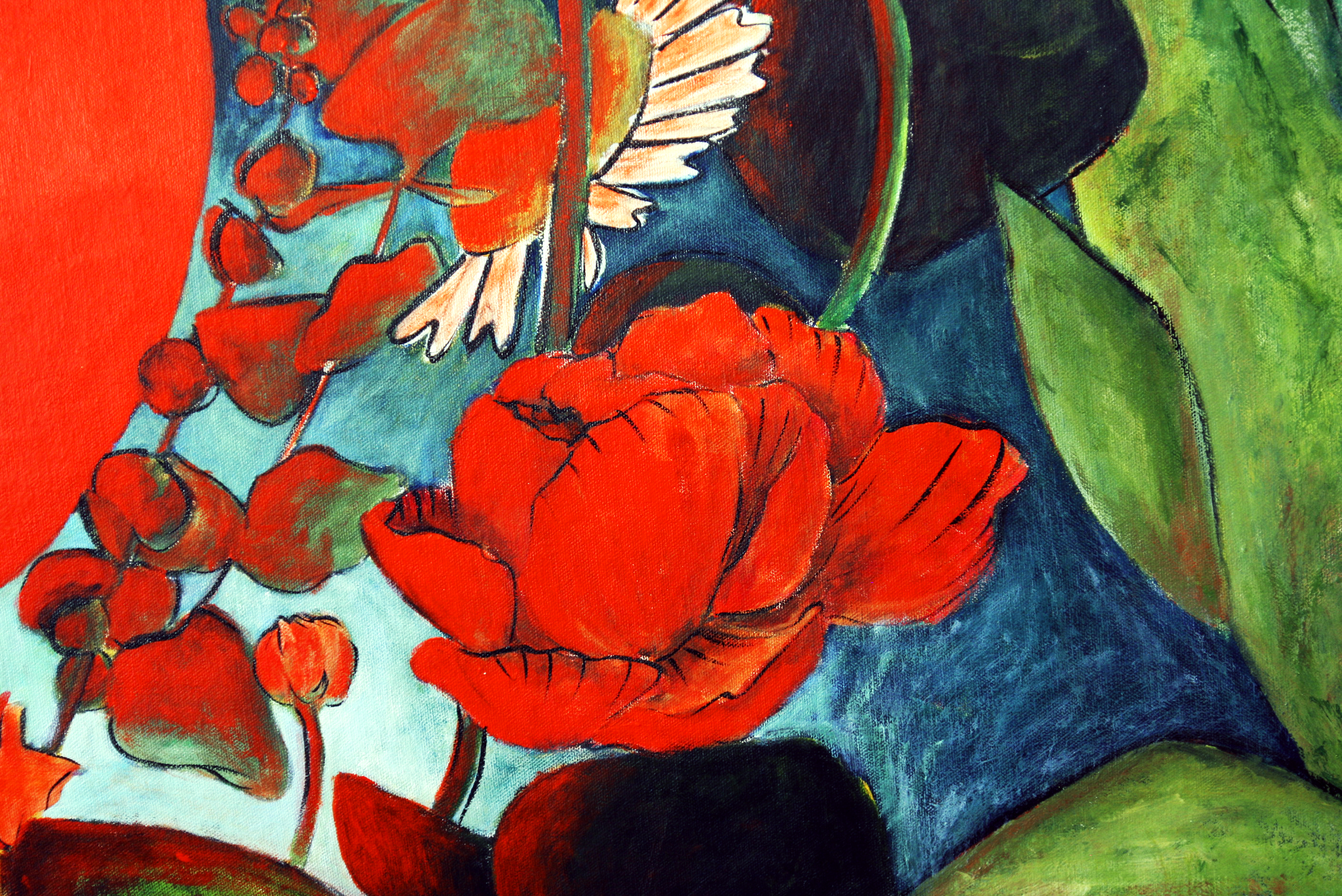 Commissioned by the boutique floral shop Blooming Great in Shoreham, the work draws from the store’s vibrant atmosphere and philosophy of celebrating life through flowers. Rooted in the personal yet resonating universally, the title suggests a poetic triangulation of relationships—among people, among forms, and among inner worlds. The composition evokes the fleeting beauty of connection, framed within nature’s cycles of bloom, decay, and renewal.